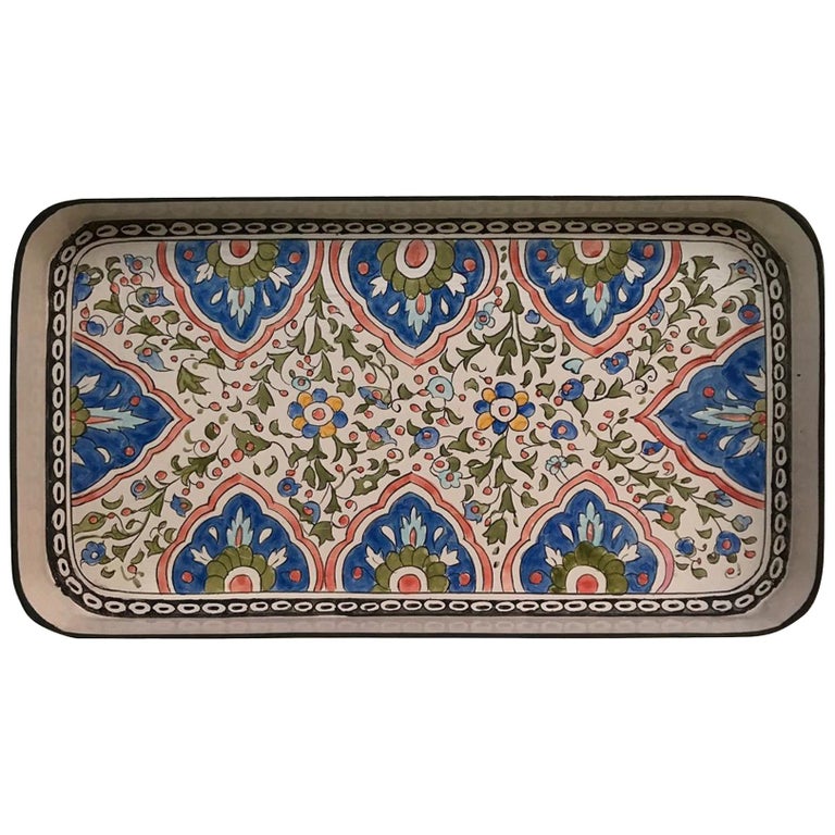 Hand Painted Persian Small Iron Tray Blue For Sale At 1stdibs